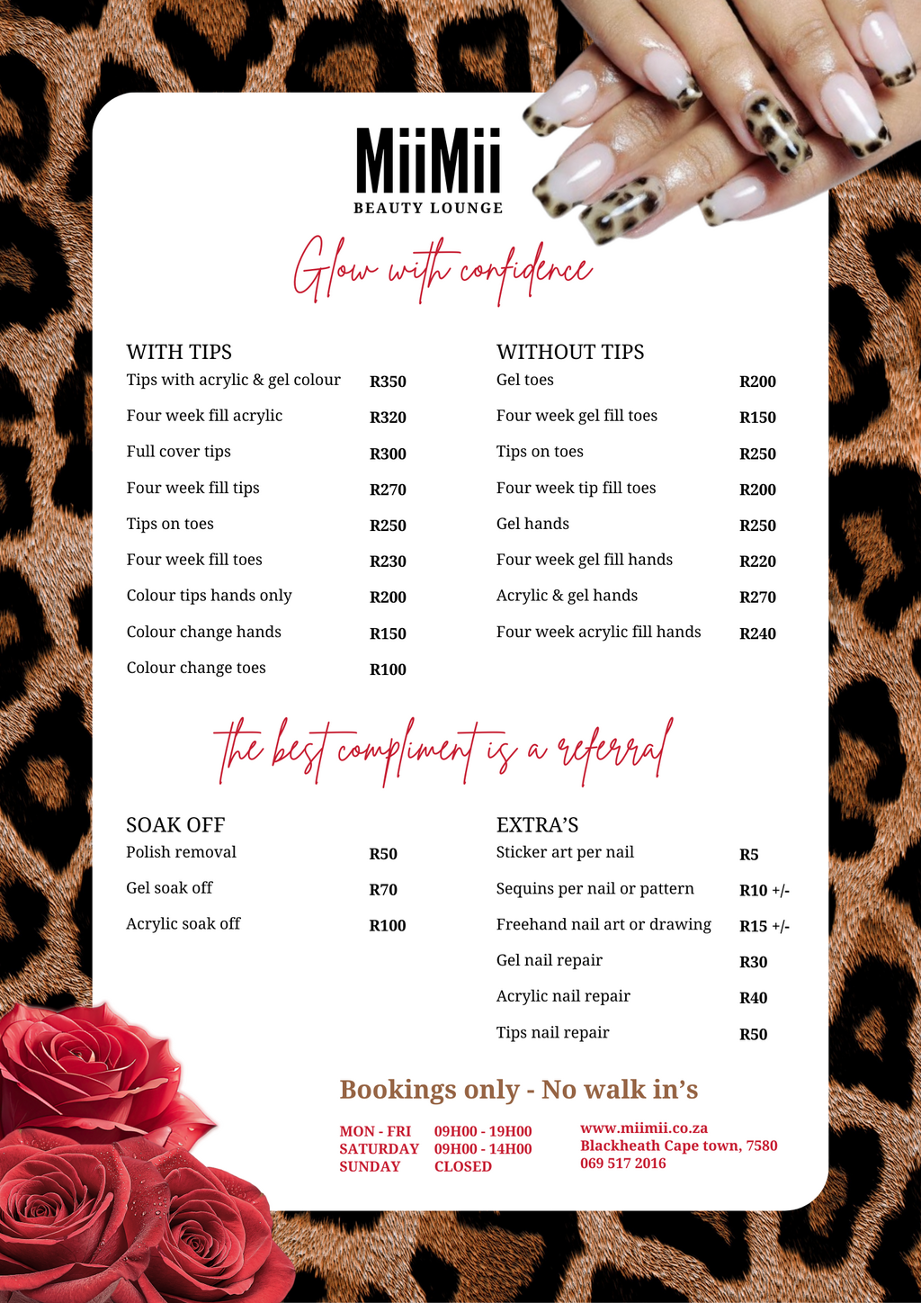 I’m Miimii. A professional nail artist with years of experience delivering handcrafted luxury nail sets. Every appointment is personalised, unhurried and focused on quality. My clients book with me for value precision, cleanliness, individuality, artistry and long-lasting nails that make a statement.